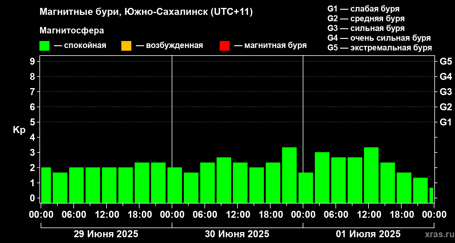 Магнитные бури в Южно-Сахалинске — 1 июля 2025 года