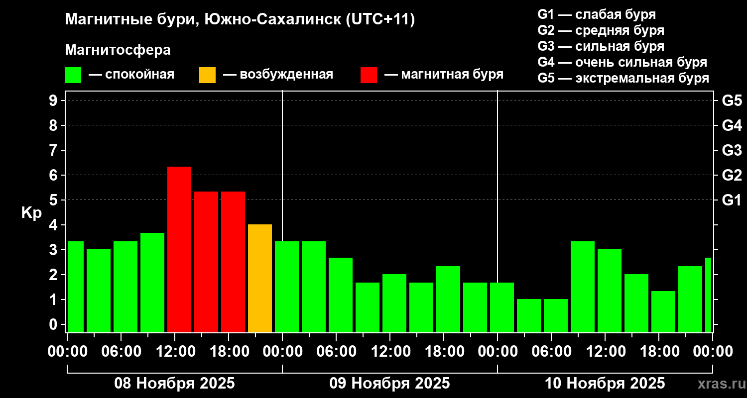 Магнитные бури в Южно-Сахалинске — 10 ноября 2025 года