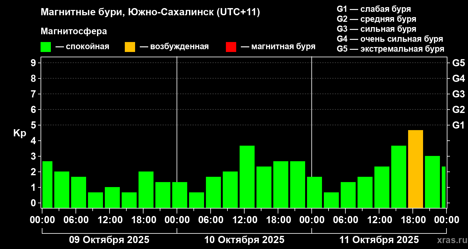 Магнитные бури в Южно-Сахалинске — 11 октября 2025 года