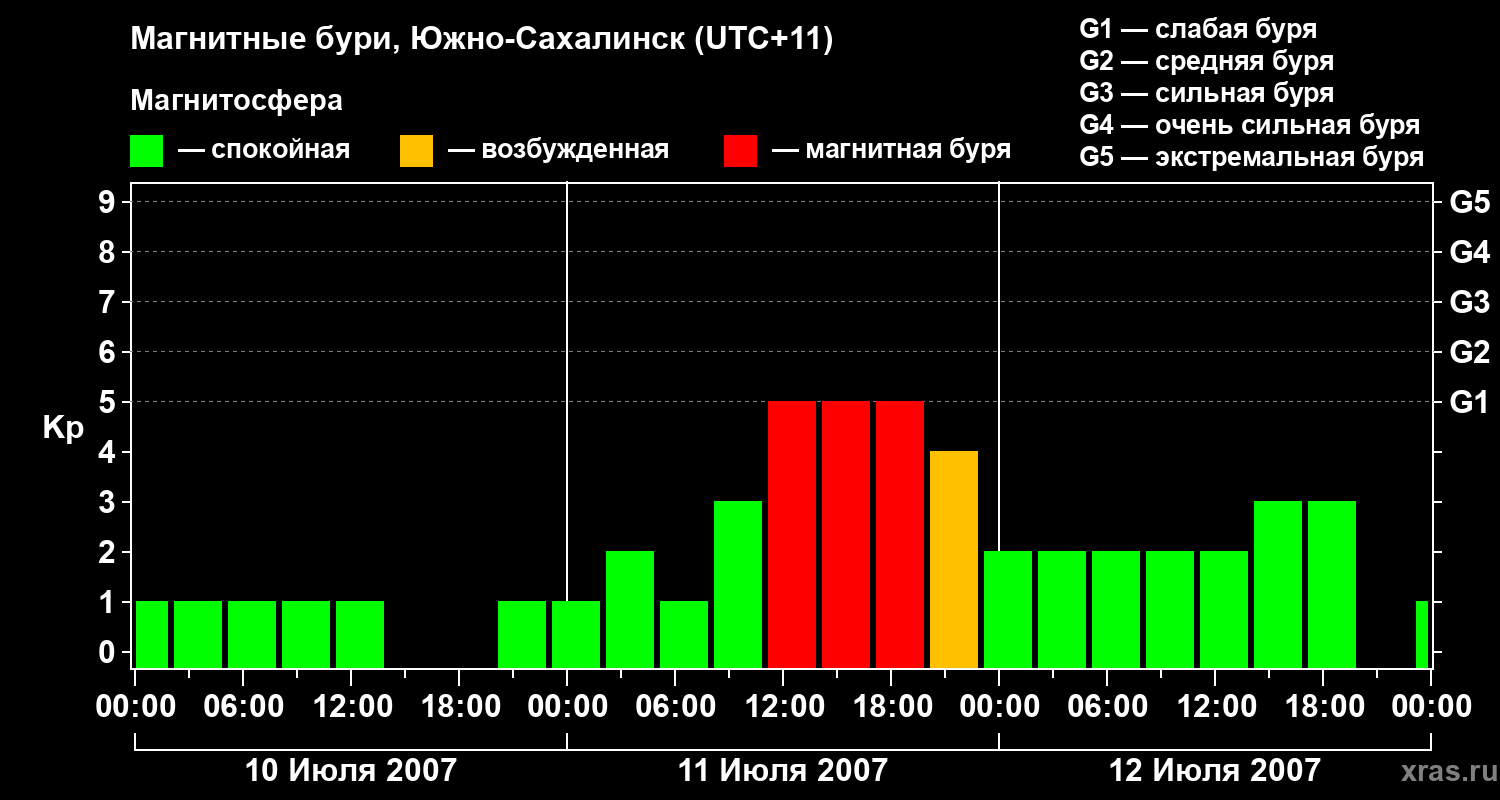 Магнитные бури в Южно-Сахалинске — 12 июля 2007 года