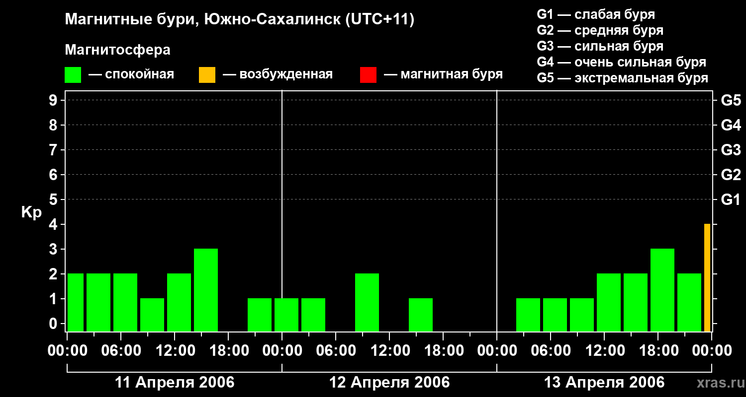 Магнитные бури в Южно-Сахалинске — 13 апреля 2006 года
