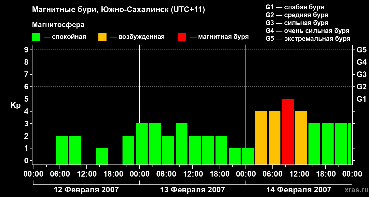 Магнитные бури в Южно-Сахалинске — 14 февраля 2007 года
