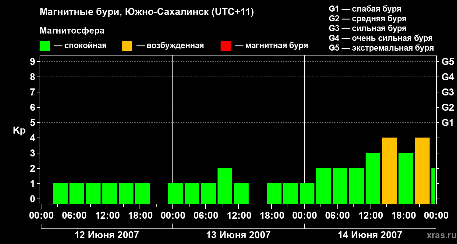 Магнитные бури в Южно-Сахалинске — 14 июня 2007 года
