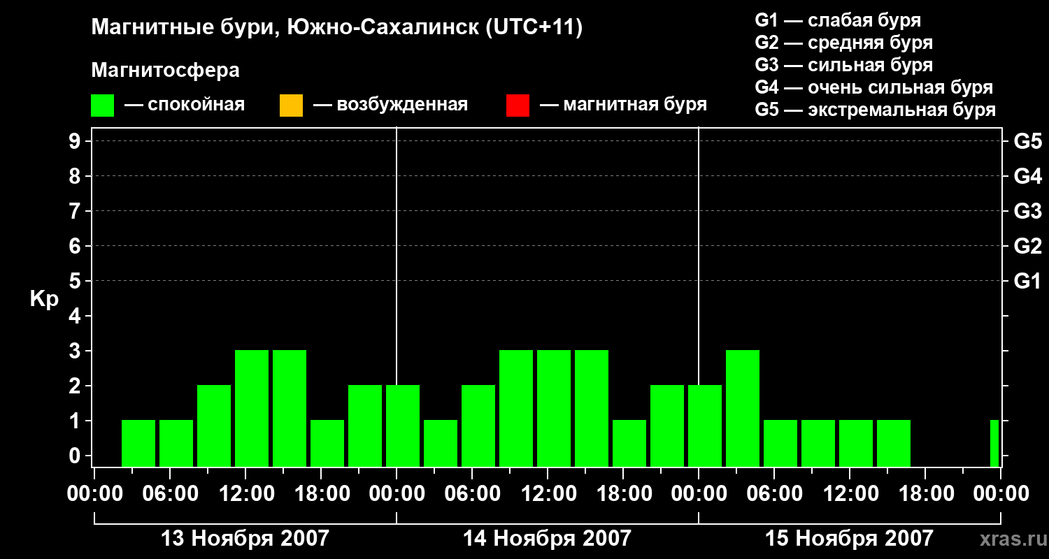 Магнитные бури в Южно-Сахалинске — 15 ноября 2007 года