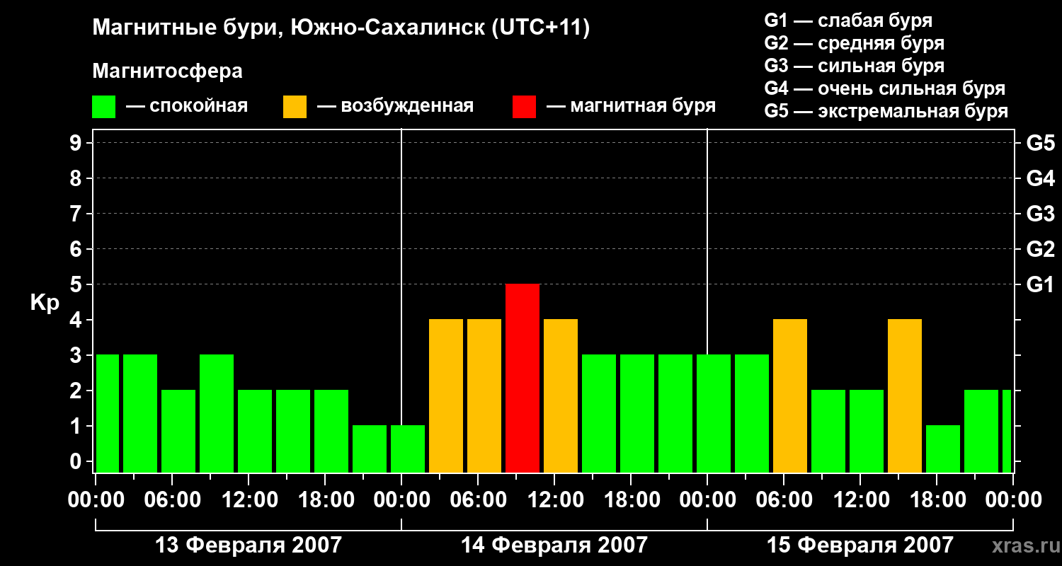 Магнитные бури в Южно-Сахалинске — 15 февраля 2007 года