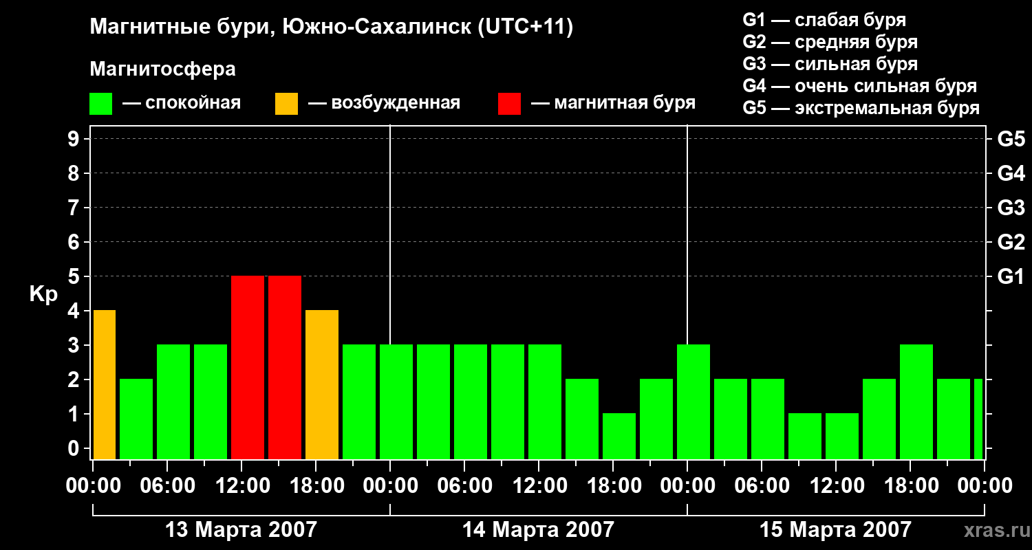 Магнитные бури в Южно-Сахалинске — 15 марта 2007 года