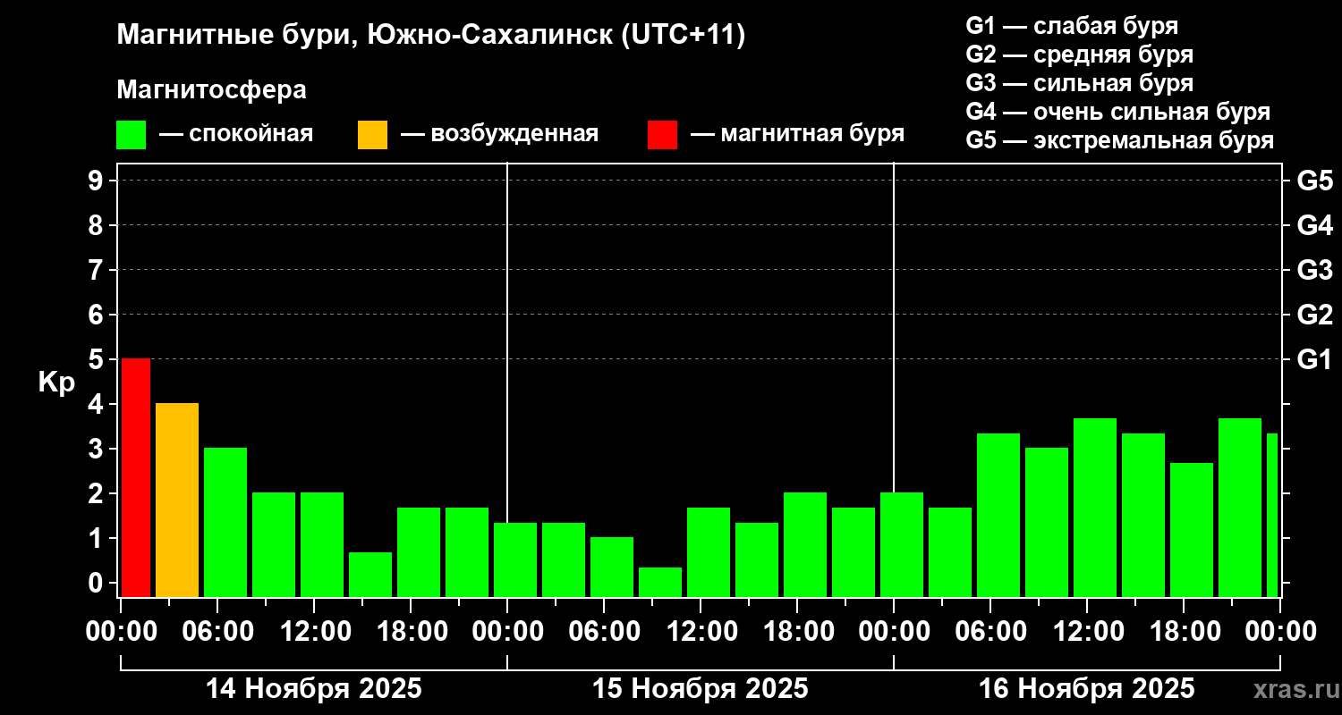 Магнитные бури в Южно-Сахалинске — 16 ноября 2025 года