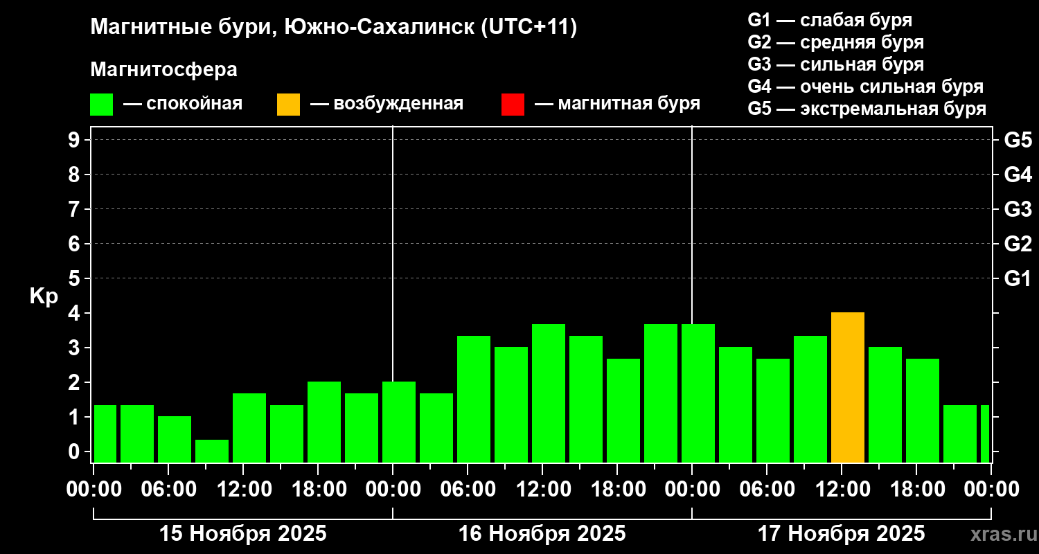 Магнитные бури в Южно-Сахалинске — 17 ноября 2025 года