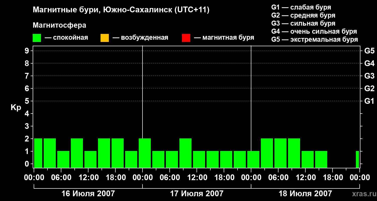 Магнитные бури в Южно-Сахалинске — 18 июля 2007 года