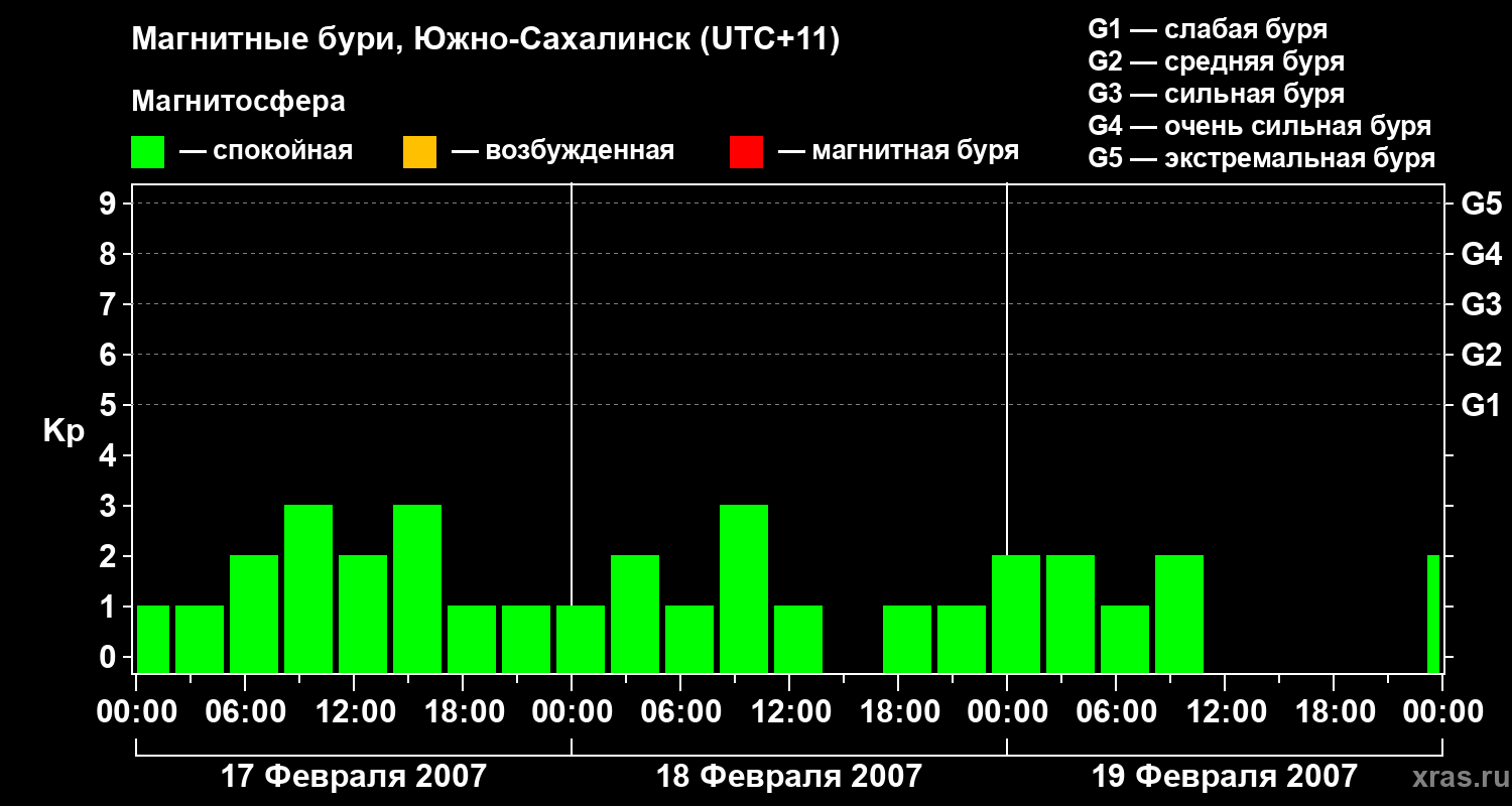 Магнитные бури в Южно-Сахалинске — 19 февраля 2007 года