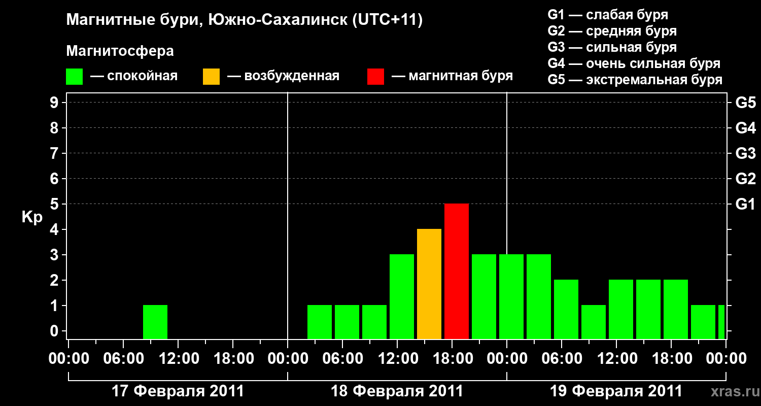 Магнитные бури в Южно-Сахалинске 19 февраля 2011 года