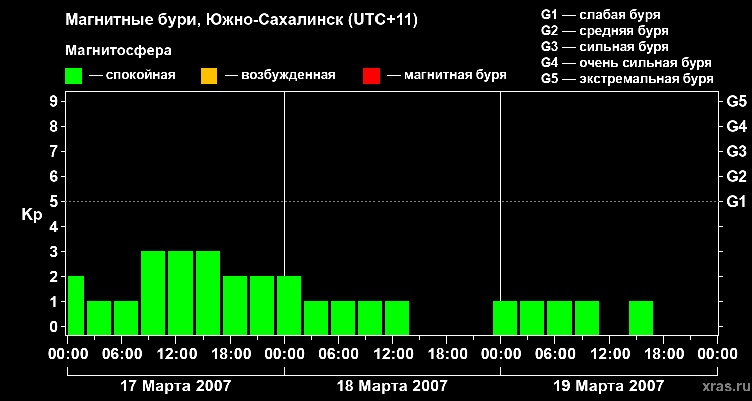 Магнитные бури в Южно-Сахалинске — 19 марта 2007 года