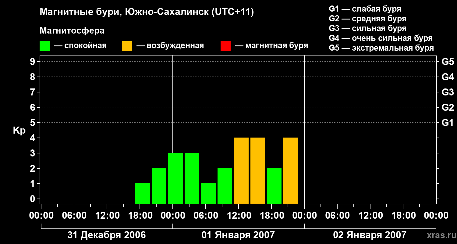 Магнитные бури в Южно-Сахалинске — 2 января 2007 года
