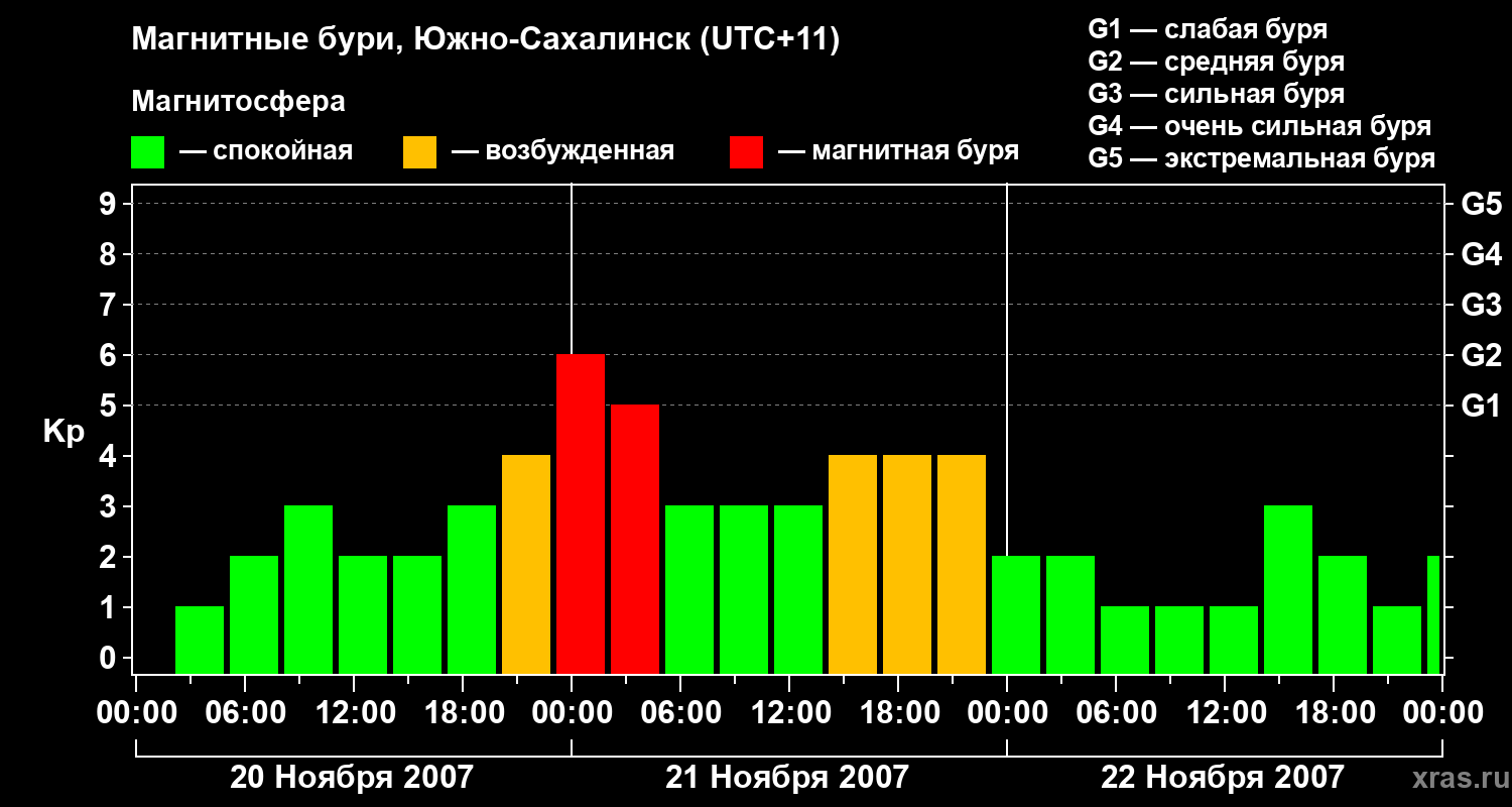 Магнитные бури в Южно-Сахалинске — 22 ноября 2007 года