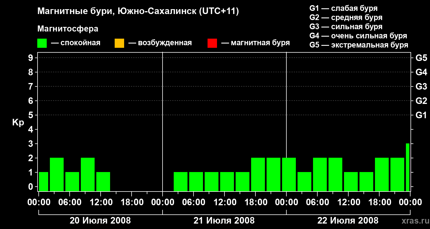 Магнитные бури в Южно-Сахалинске — 22 июля 2008 года