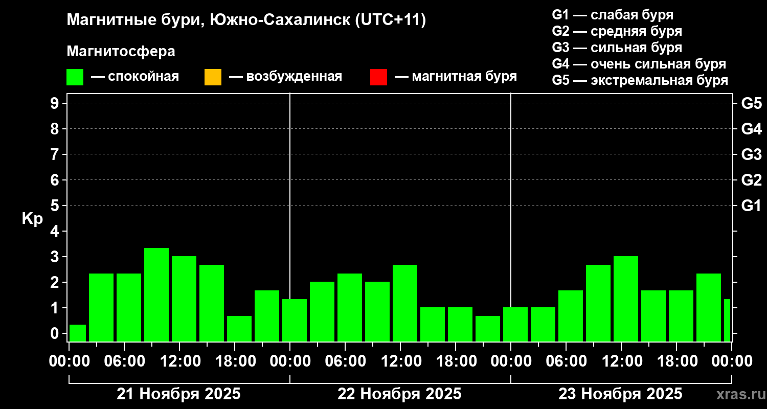 Магнитные бури в Южно-Сахалинске — 23 ноября 2025 года