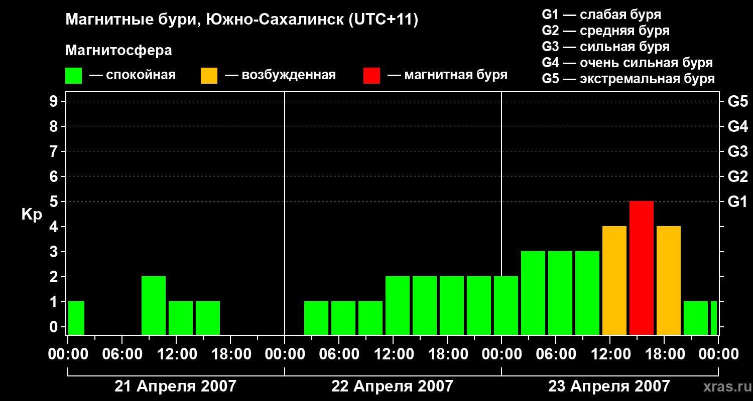 Магнитные бури в Южно-Сахалинске — 23 апреля 2007 года