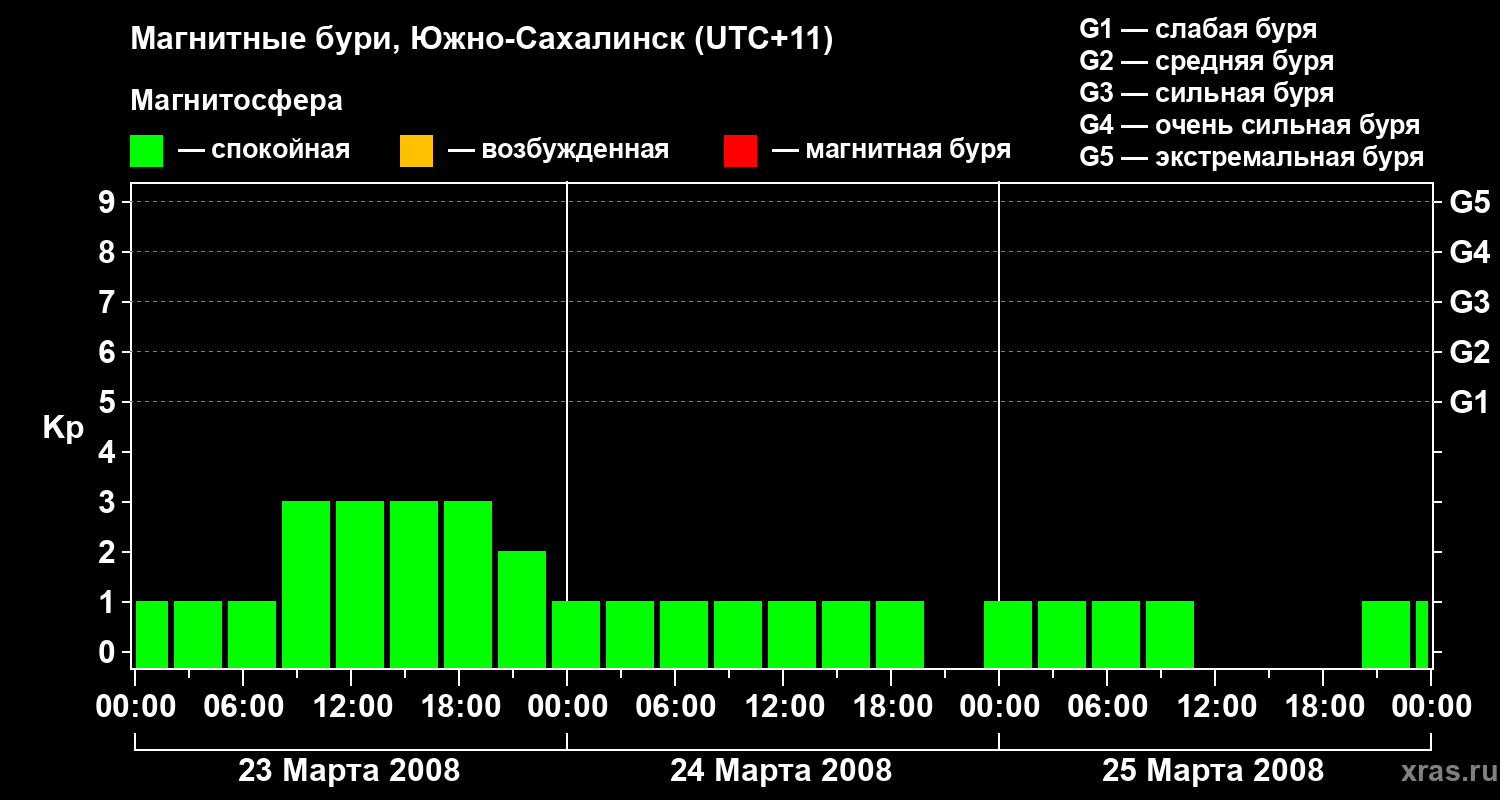Магнитные бури в Южно-Сахалинске — 25 марта 2008 года