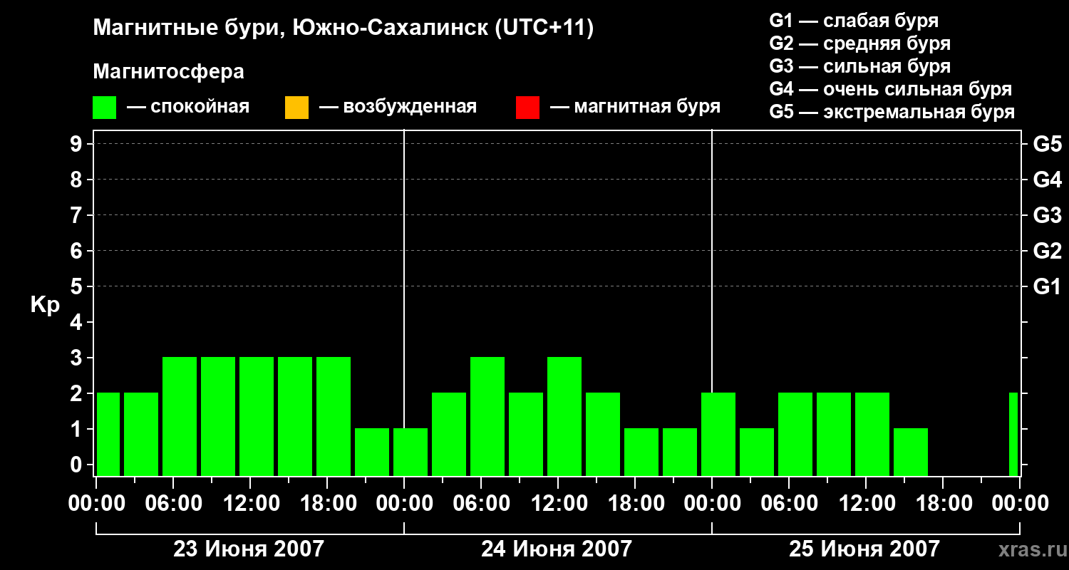 Магнитные бури в Южно-Сахалинске — 25 июня 2007 года