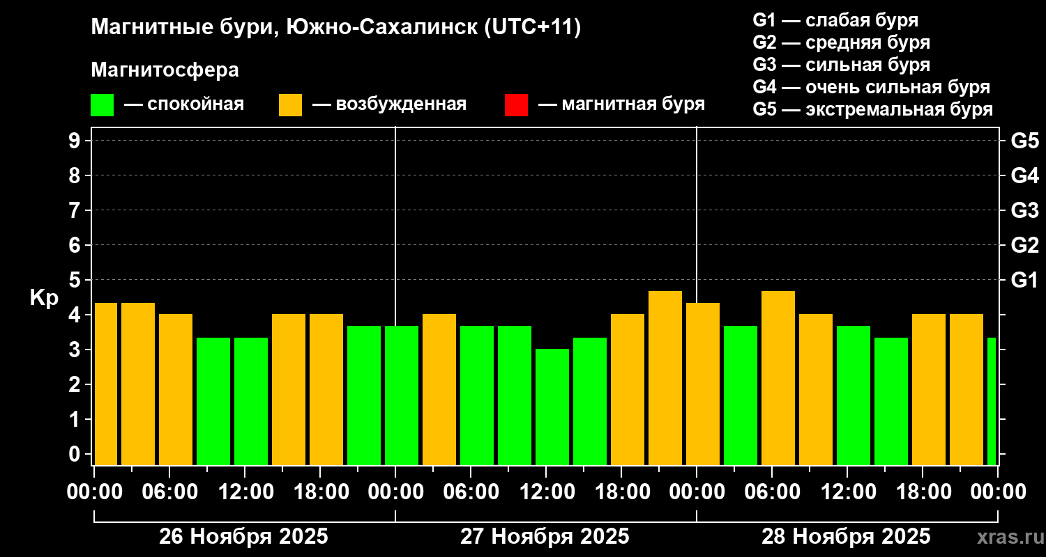 Магнитные бури в Южно-Сахалинске — 28 ноября 2025 года