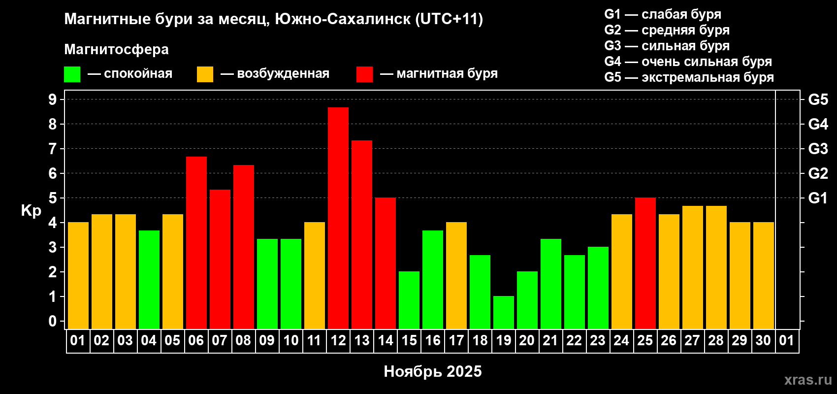 Магнитные бури в Южно-Сахалинске в ноябре 2025 года