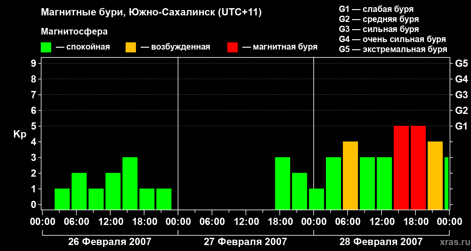 Магнитные бури в Южно-Сахалинске — 28 февраля 2007 года