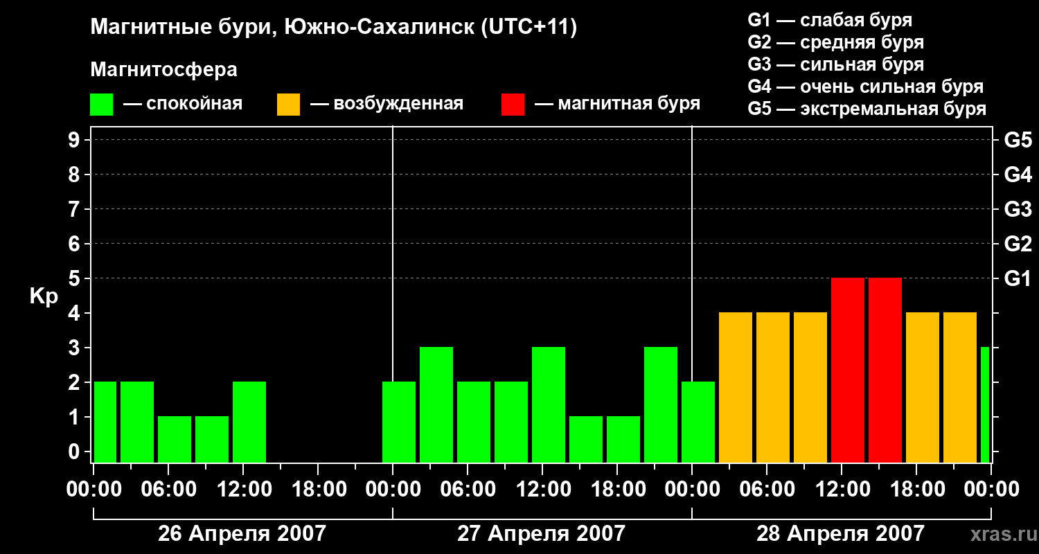 Магнитные бури в Южно-Сахалинске — 28 апреля 2007 года