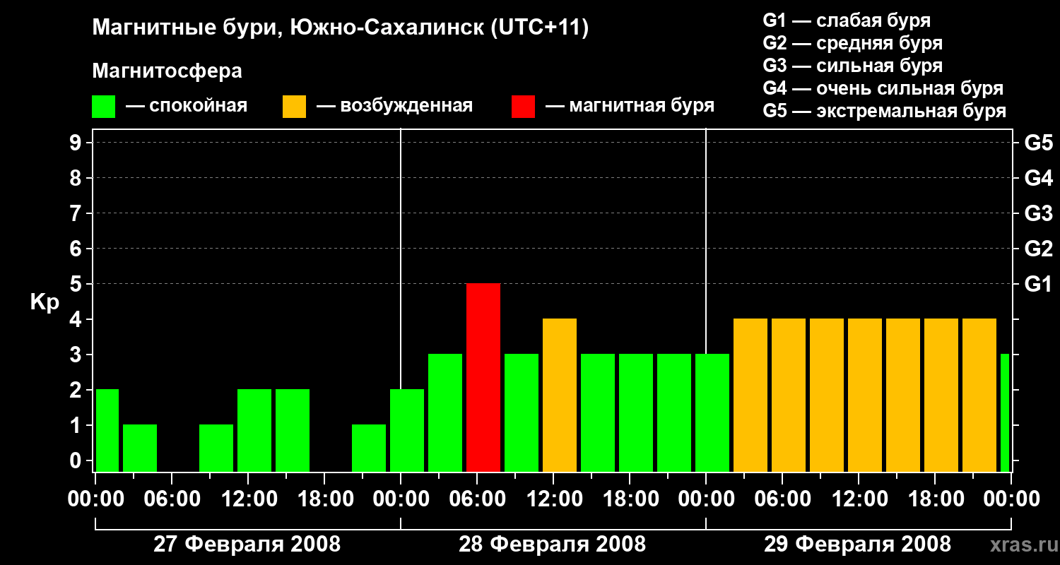Магнитные бури в Южно-Сахалинске — 29 февраля 2008 года