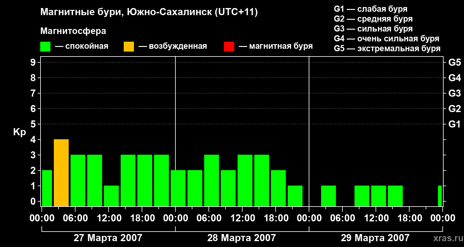 Магнитные бури в Южно-Сахалинске — 29 марта 2007 года
