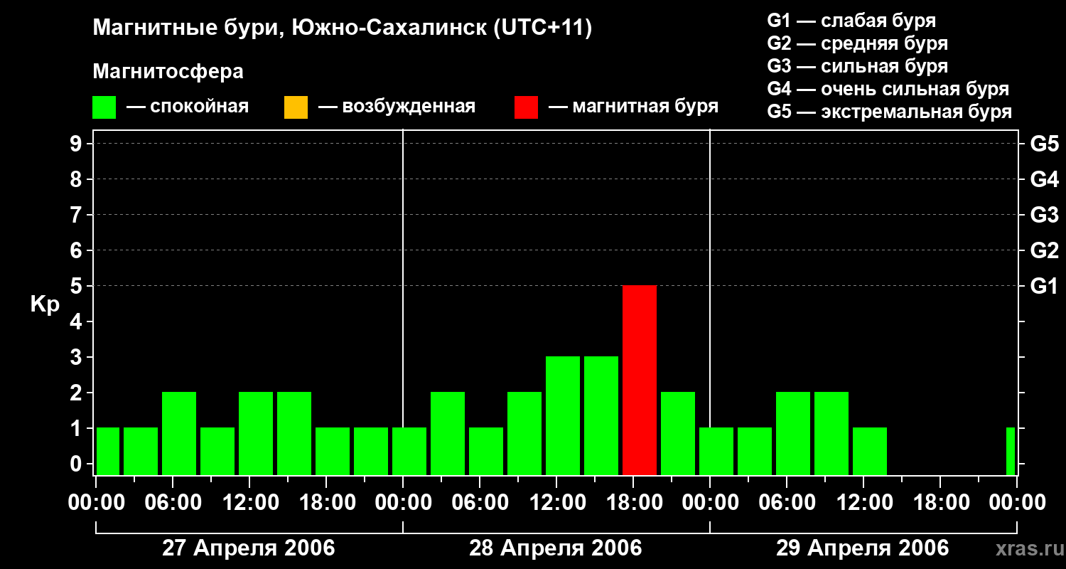 Магнитные бури в Южно-Сахалинске — 29 апреля 2006 года
