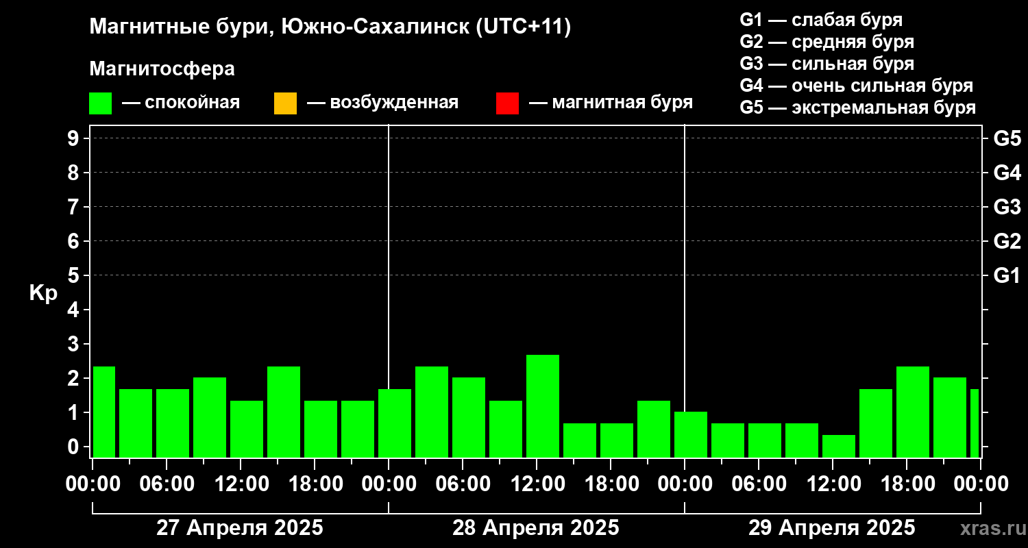 Магнитные бури в Южно-Сахалинске — 29 апреля 2025 года