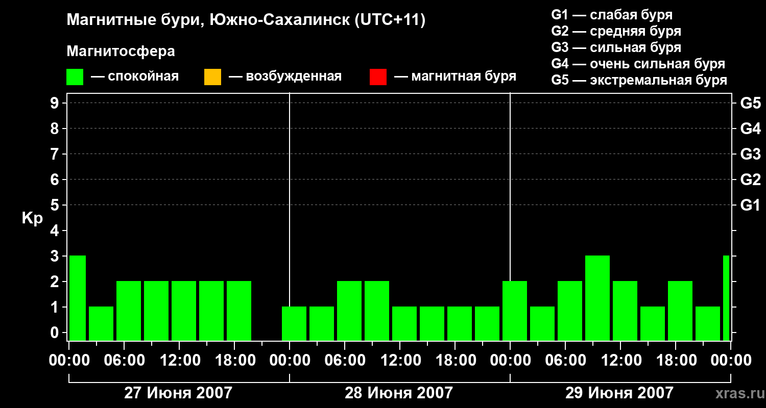 Магнитные бури в Южно-Сахалинске — 29 июня 2007 года