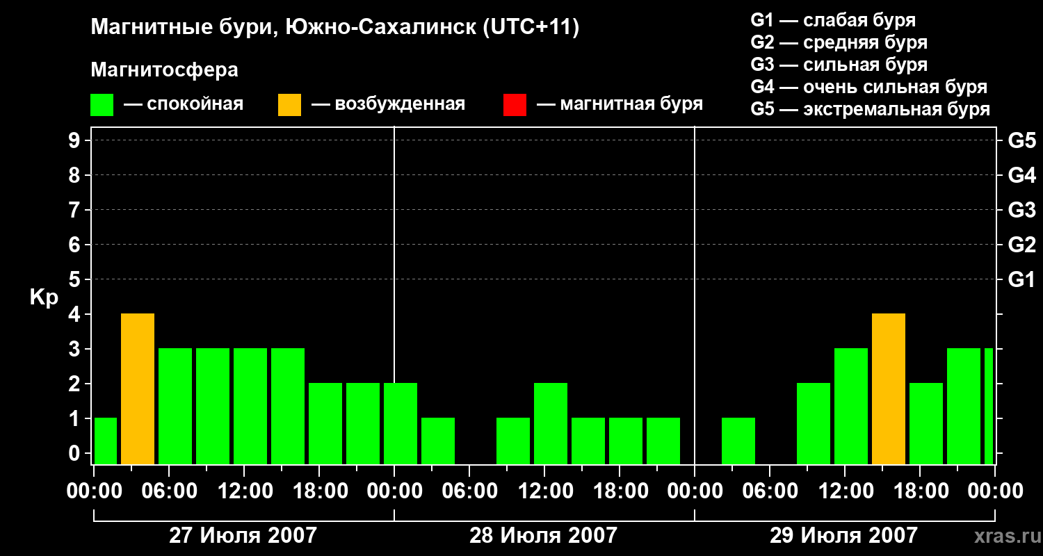 Магнитные бури в Южно-Сахалинске — 29 июля 2007 года