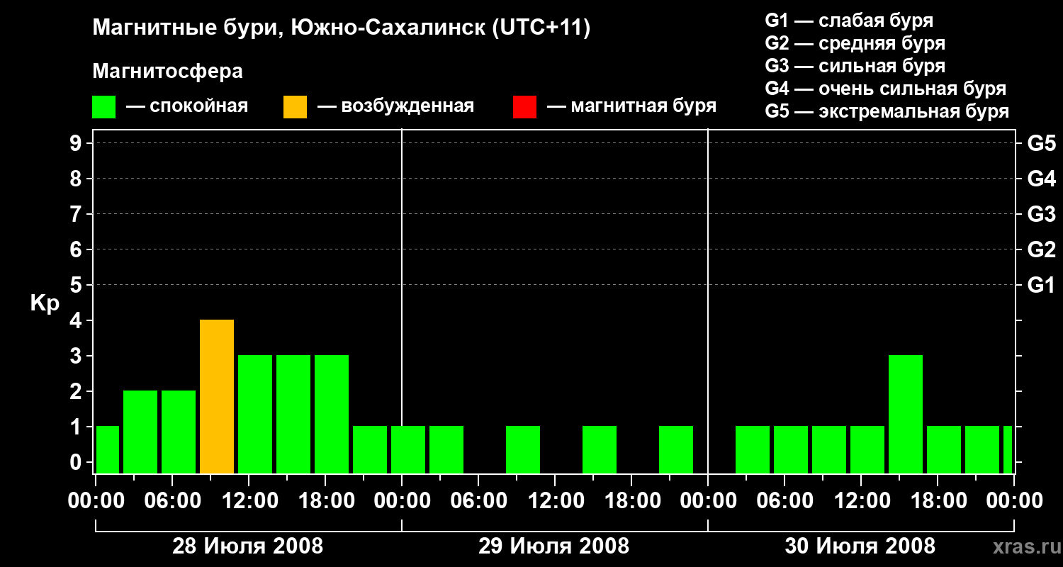 Магнитные бури в Южно-Сахалинске — 30 июля 2008 года