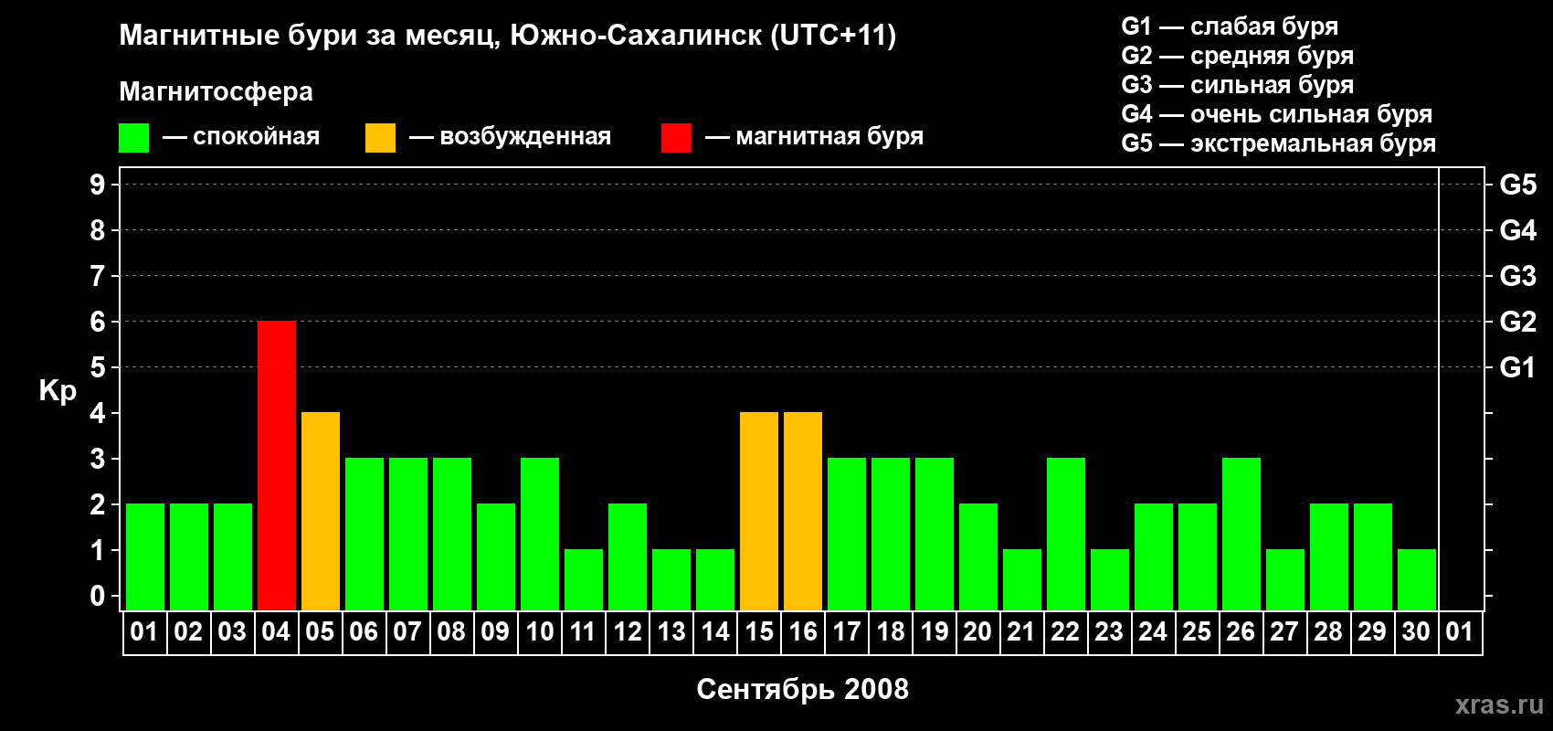 Магнитные бури в Южно-Сахалинске — 30 сентября 2008 года