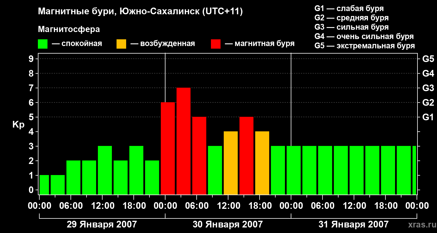 Магнитные бури в Южно-Сахалинске — 31 января 2007 года