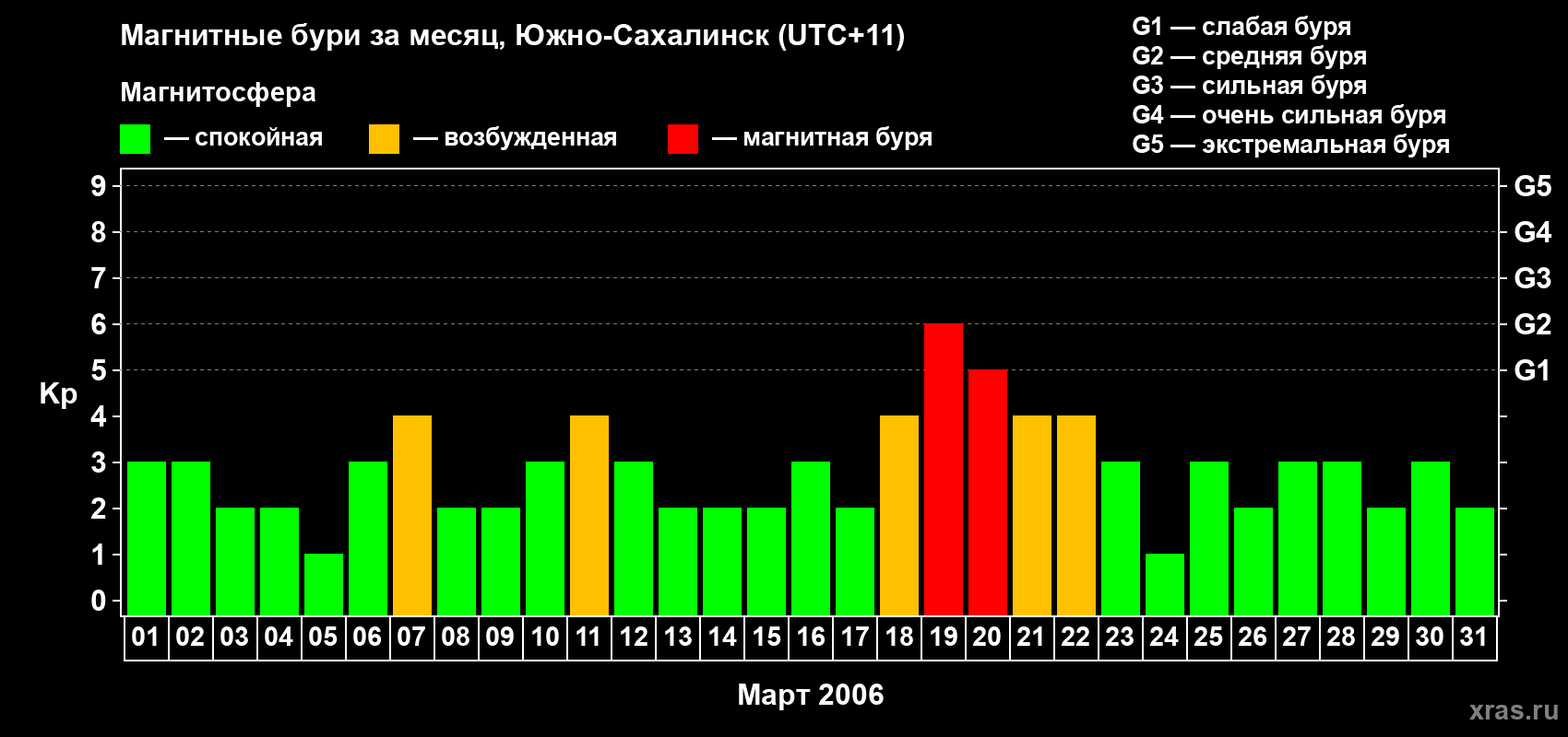 Магнитные бури в Южно-Сахалинске в марте 2006 года