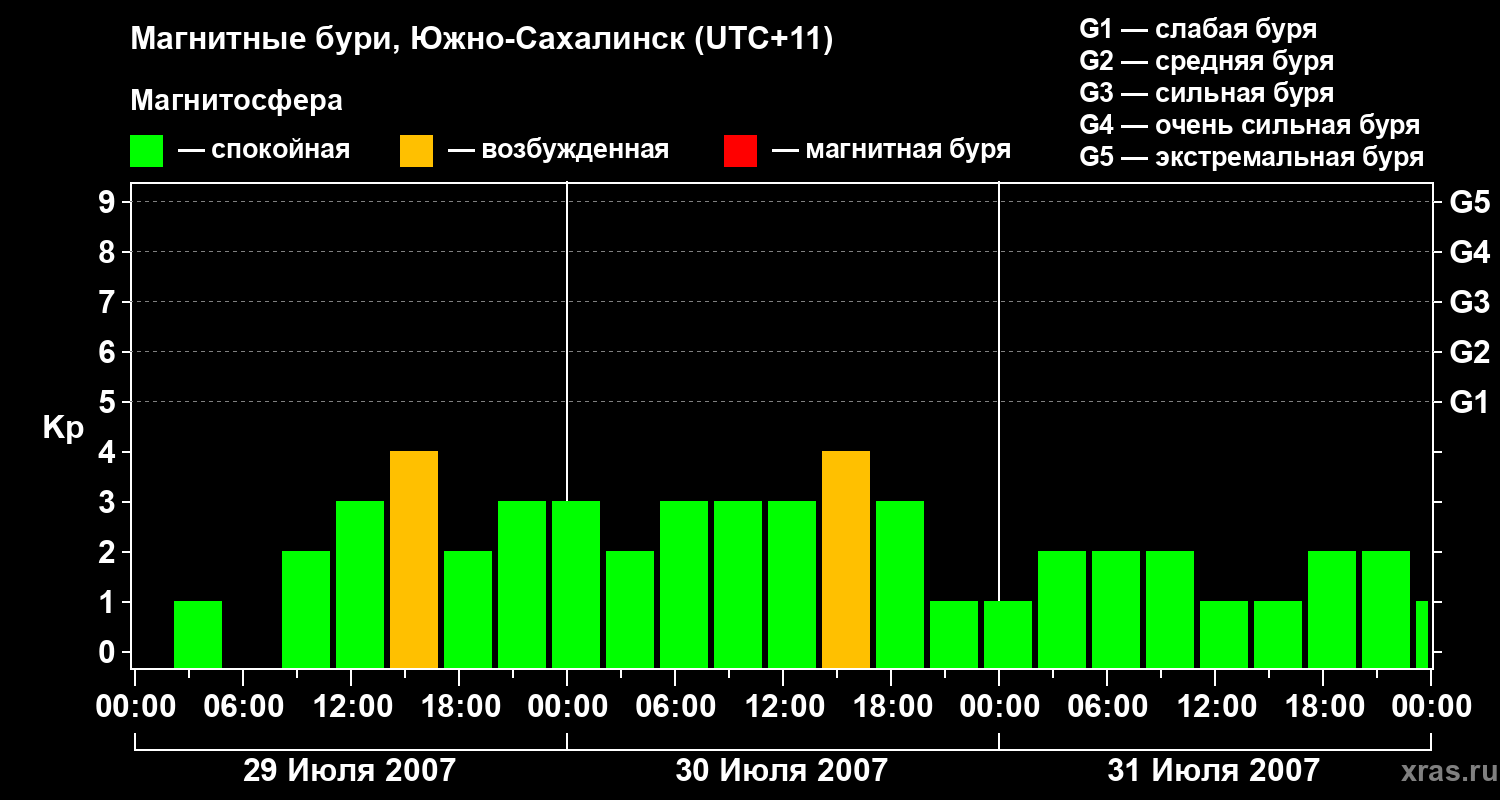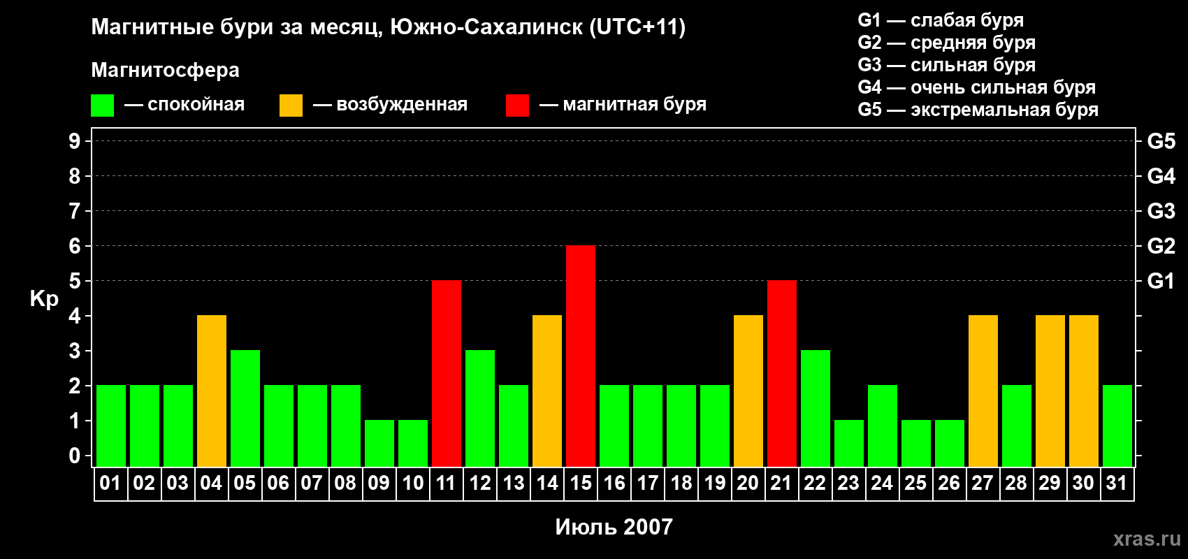 Магнитные бури в Южно-Сахалинске — 31 июля 2007 года