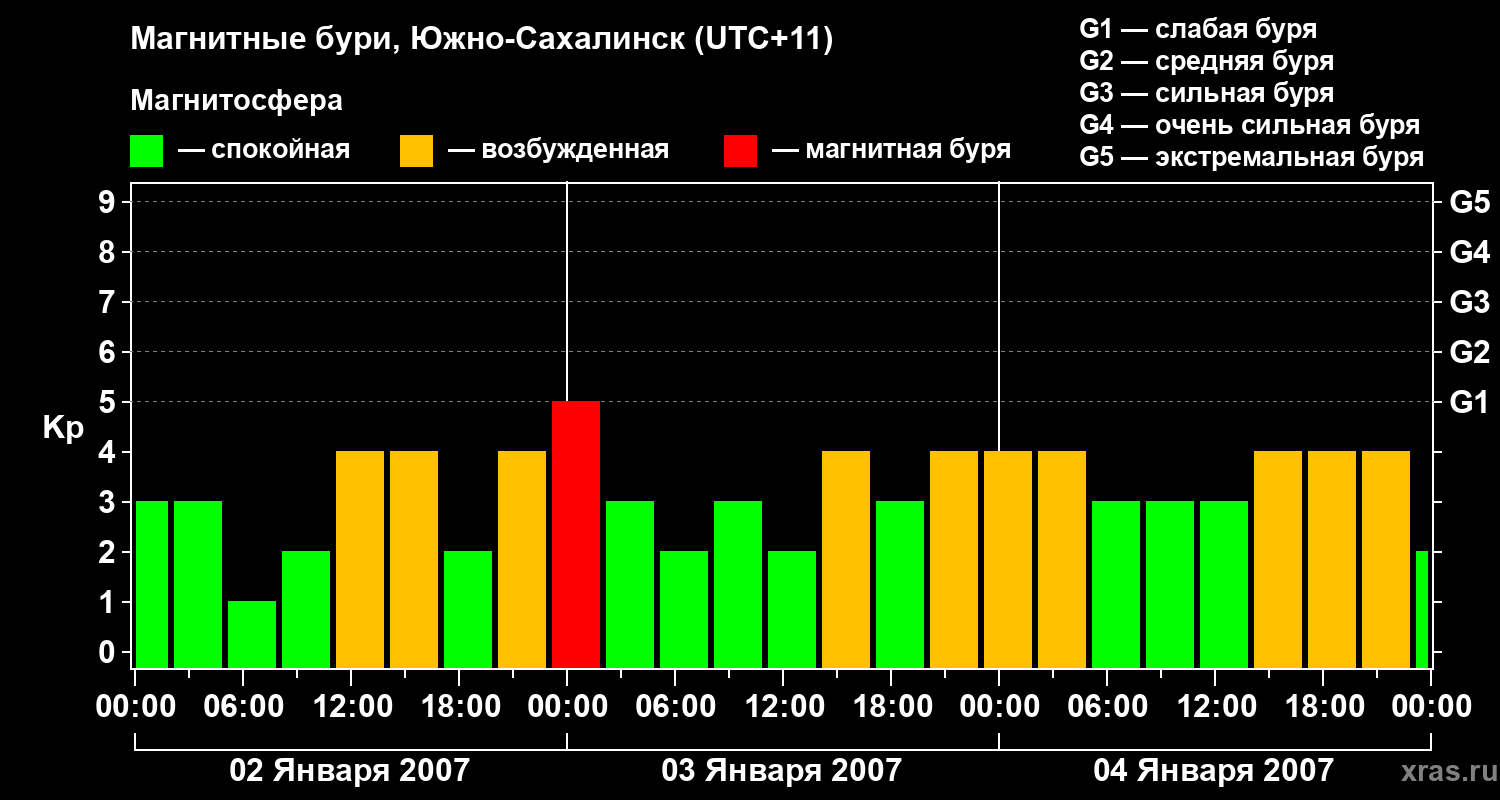 Магнитные бури в Южно-Сахалинске — 4 января 2007 года