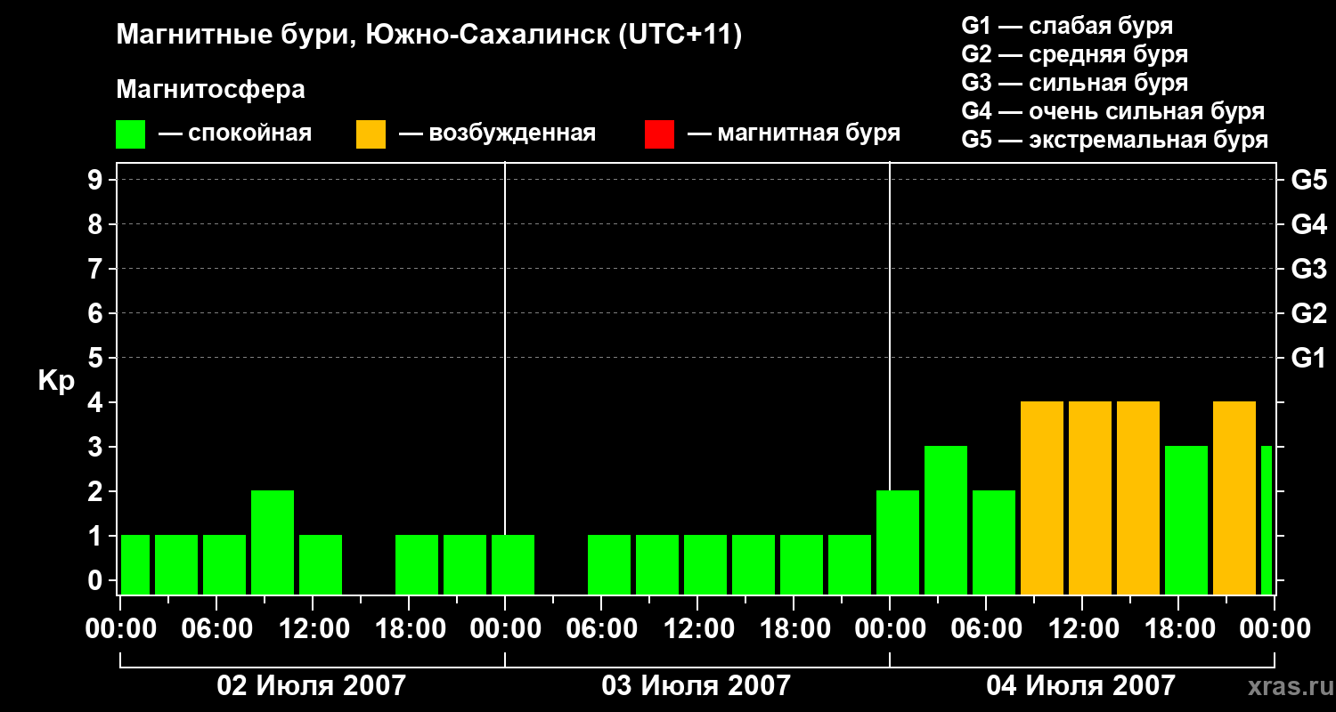Магнитные бури в Южно-Сахалинске — 4 июля 2007 года