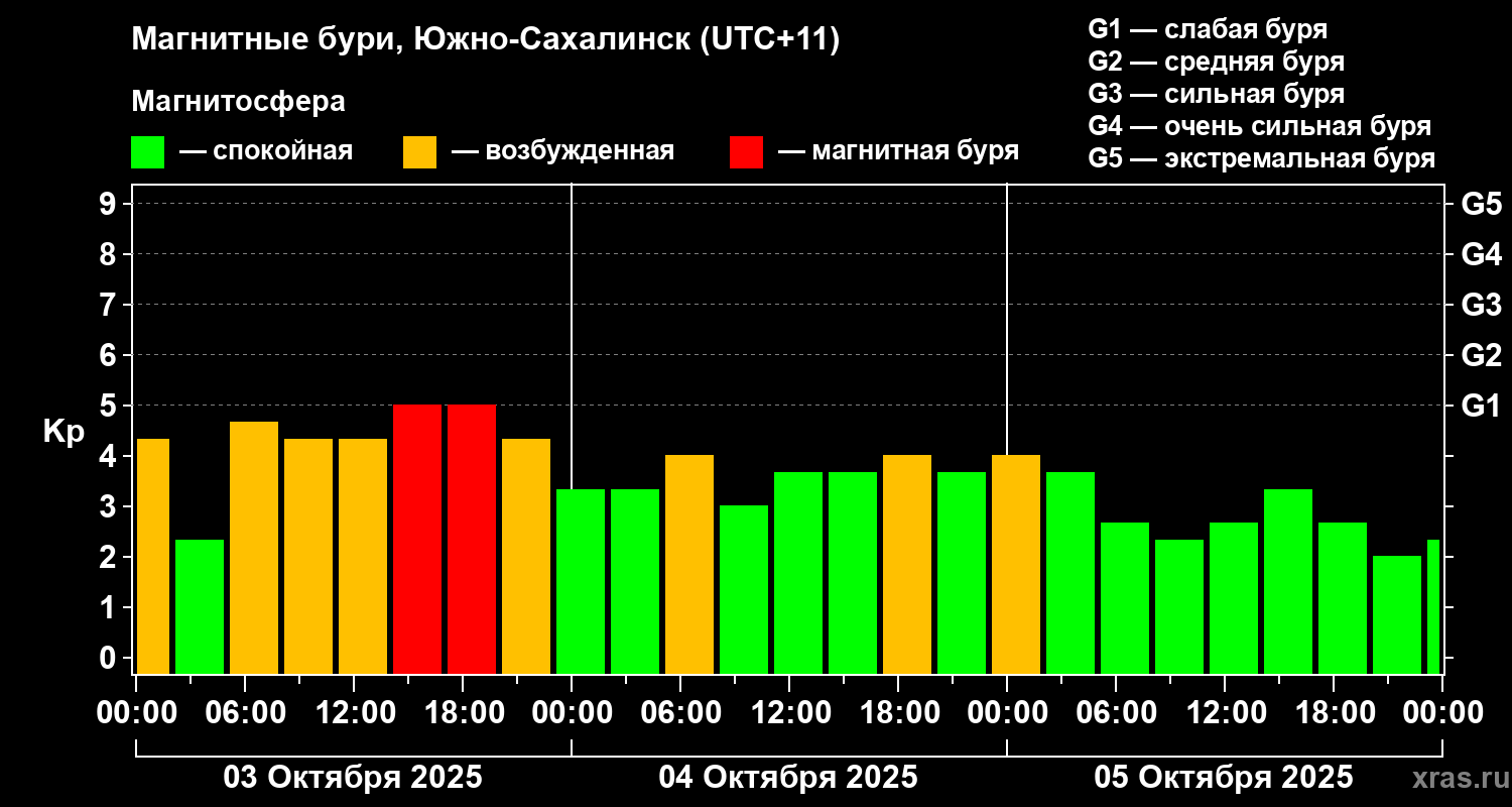 Магнитные бури в Южно-Сахалинске — 5 октября 2025 года