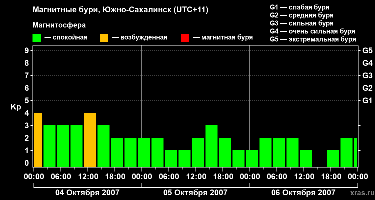 Магнитные бури в Южно-Сахалинске 6 октября 2007 года