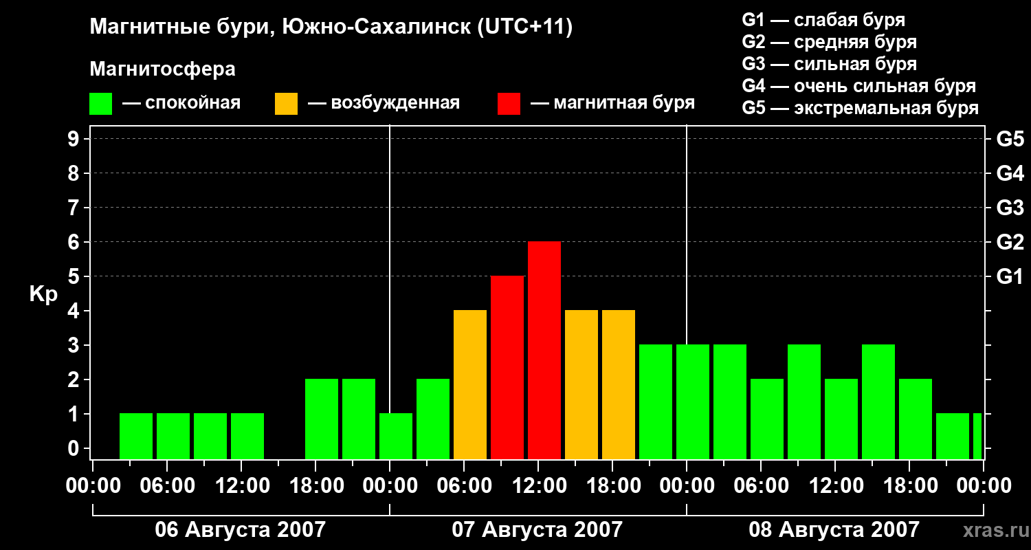 Магнитные бури в Южно-Сахалинске — 8 августа 2007 года