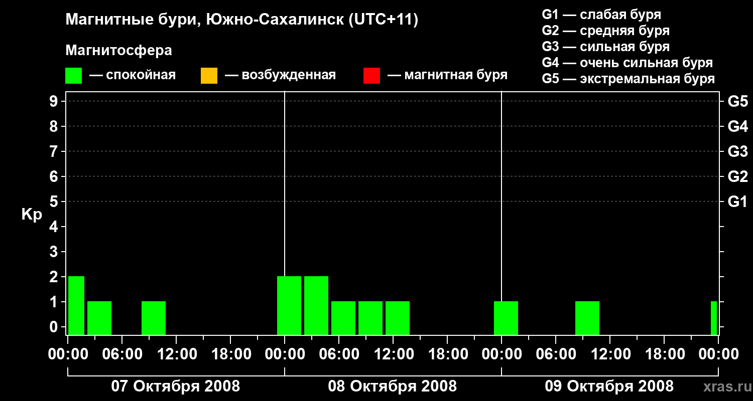 Магнитные бури в Южно-Сахалинске 9 октября 2008 года