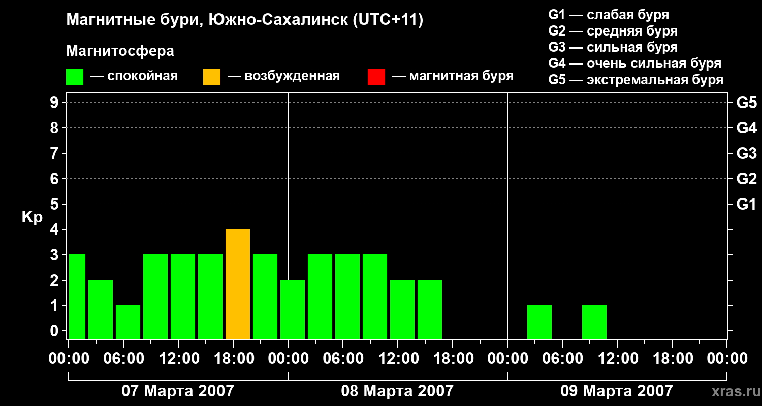 Магнитные бури в Южно-Сахалинске — 9 марта 2007 года