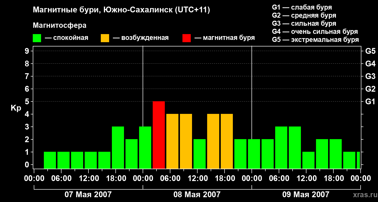 Магнитные бури в Южно-Сахалинске — 9 мая 2007 года