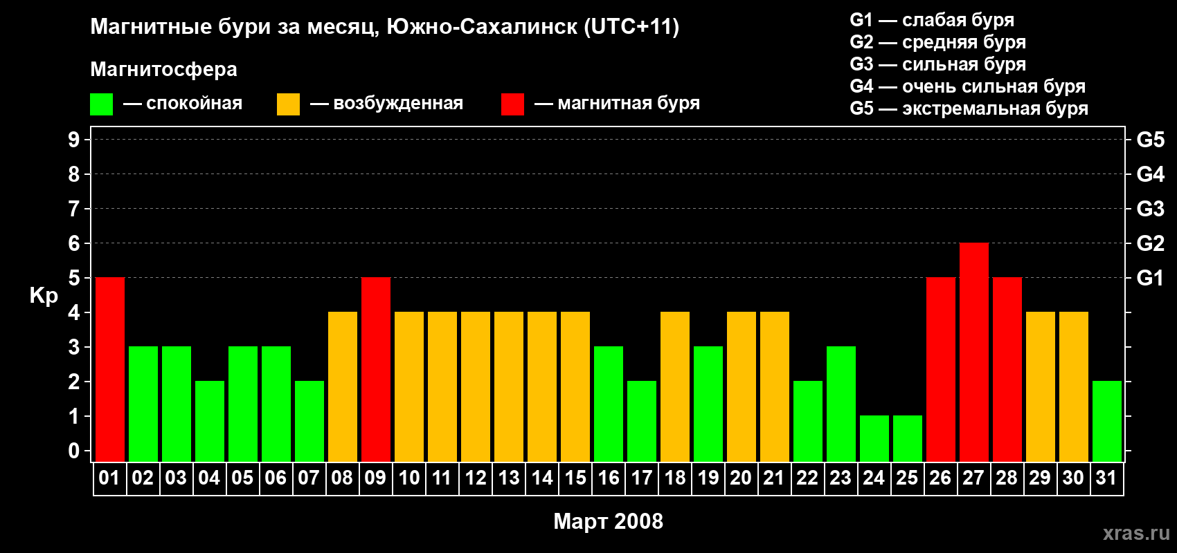 Список магнитных бурь в марте 2008 года