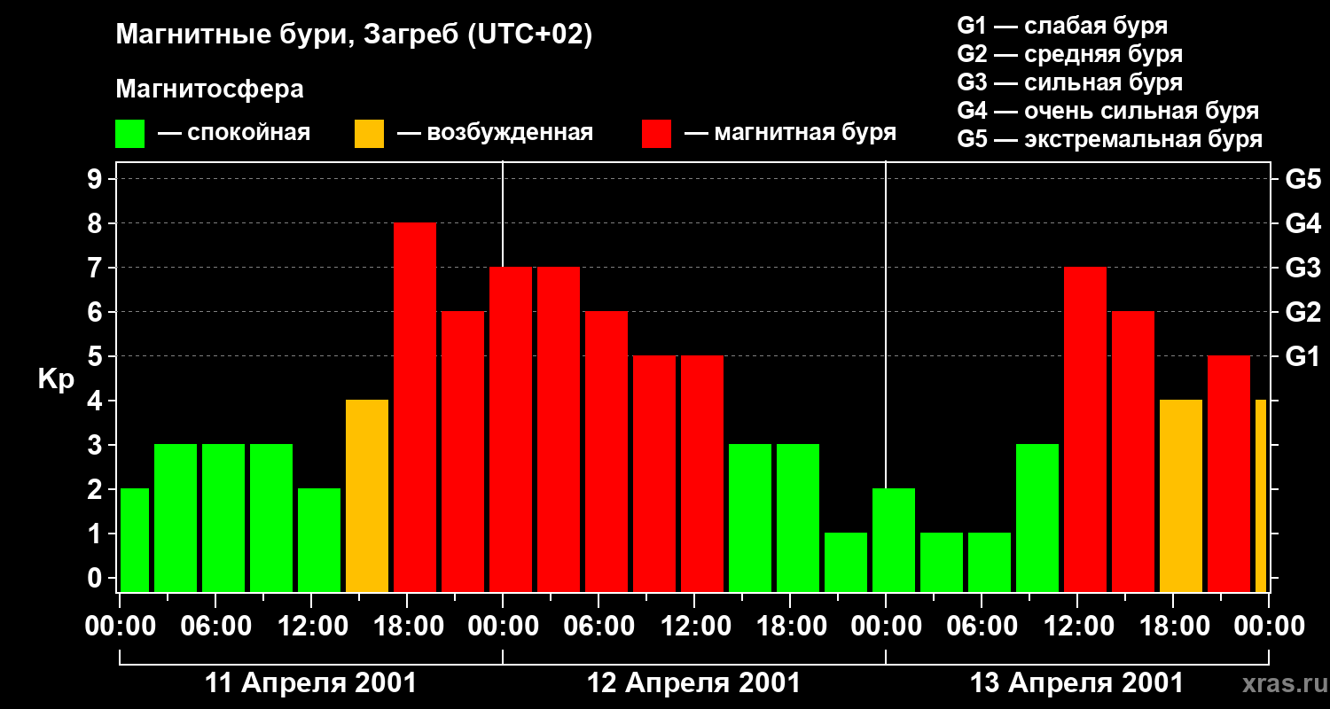 Магнитные бури в Загребе — 13 апреля 2001 года