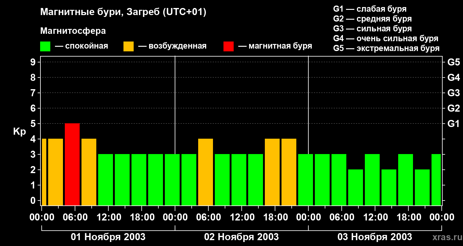 Магнитные бури в Загребе — 3 ноября 2003 года