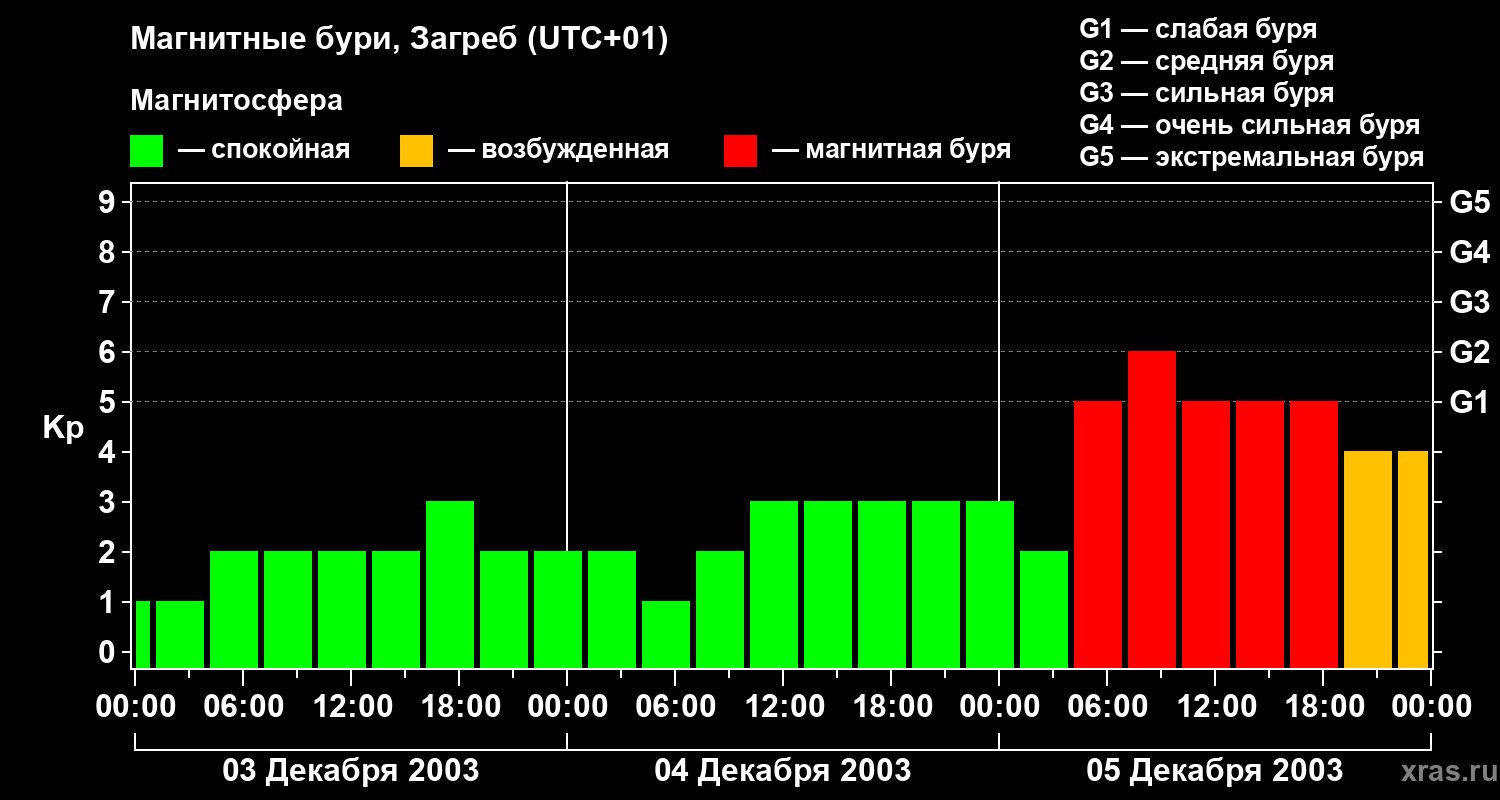 Магнитные бури в Загребе — 5 декабря 2003 года